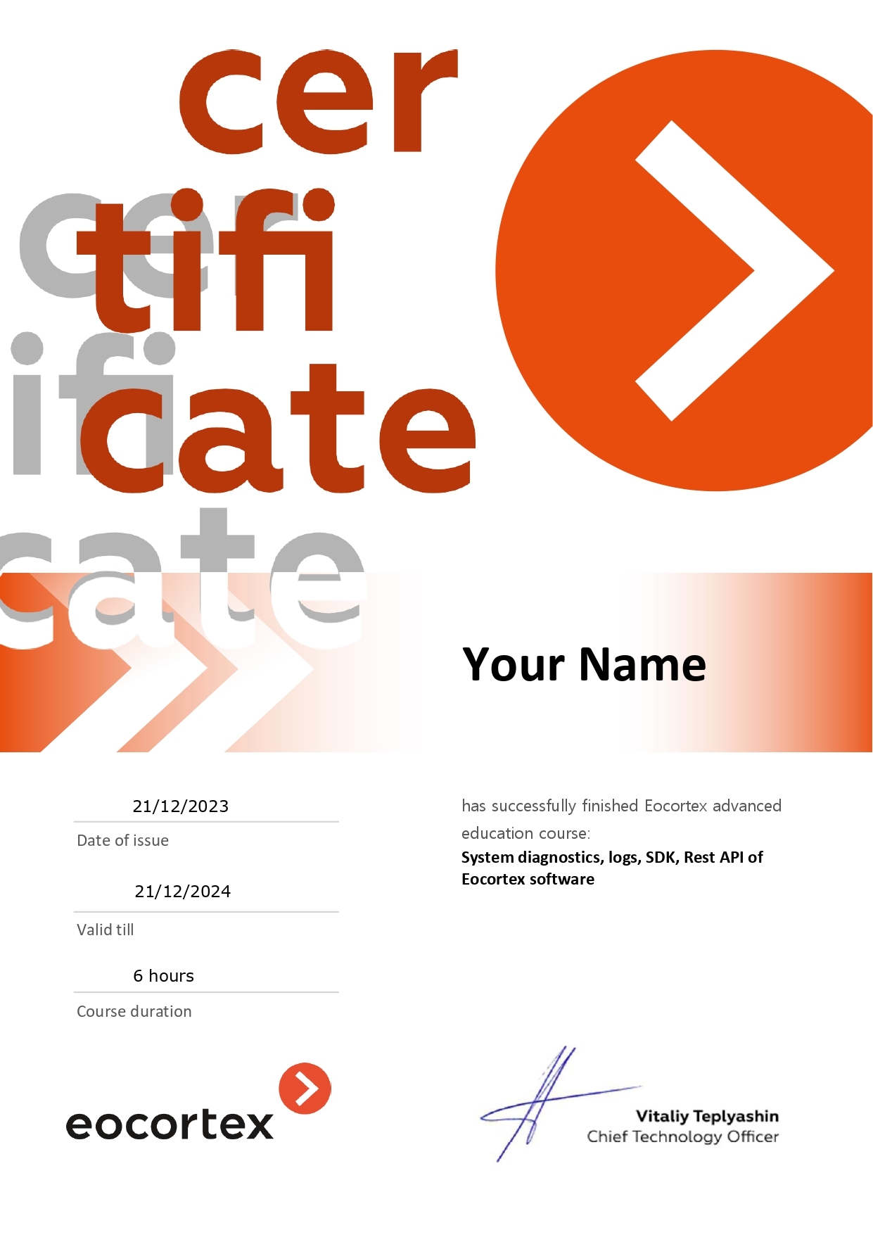 Companies whose employees have received these certificates have the opportunity to become authorized partners of Eocortex and be listed on our website.